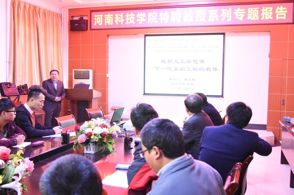 91论坛 校特聘教授魏文辉博士做了《植物人工染色体——下一代基因工程的载体》的报告。魏文辉博士结合自己的研究经历,对经过质粒载体编辑修饰的染色体——植物人工染色体的研究进展情况进行了详细的讲解和阐述。魏博士的报告引经据典、图文并茂,报告结束后与参会人员进行了交流。该报告会很好地激发了学生的学习兴趣,促进了91论坛 的学术交流氛围和学术水平的提升。