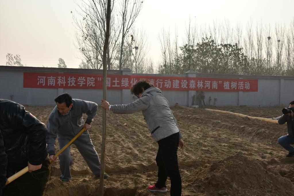 11月26日上午,以响应学校举办的“国土绿化提速行动建设森林河南”植树活动为契机,生命科技学院开展了以倡导“植绿、护绿、爱绿”的文明新风为主题的植树活动,在党委书记余鹏同志和院长刘明久同志带领下,91论坛 九个党支部的40余名党员干部积极参加,按照学校统一规划,在所属片区种下了80棵苗木。