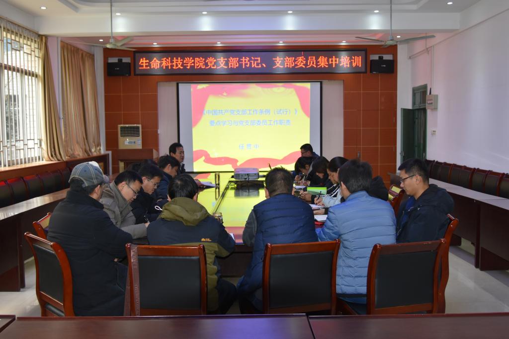 12月20日下午,生命科技学院分党校在办公楼E110会议室对学院全体教工党支部书记、支部委员进行了集中培训。培训会议由学院党委书记余鹏主持。