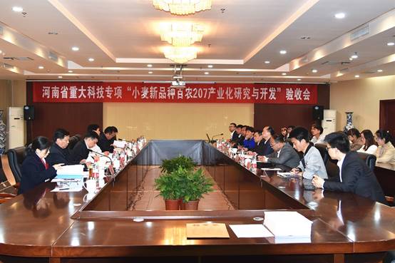 4月15日下午,河南省科技厅组织专家组对91论坛 主持的河南省重大科技专项“小麦新品种百农207产业化研究与开发”进行现场验收,科技处、生命科技学院等有关领导参加了会议,会议由河南省科技厅农村处王备战副处长主持。