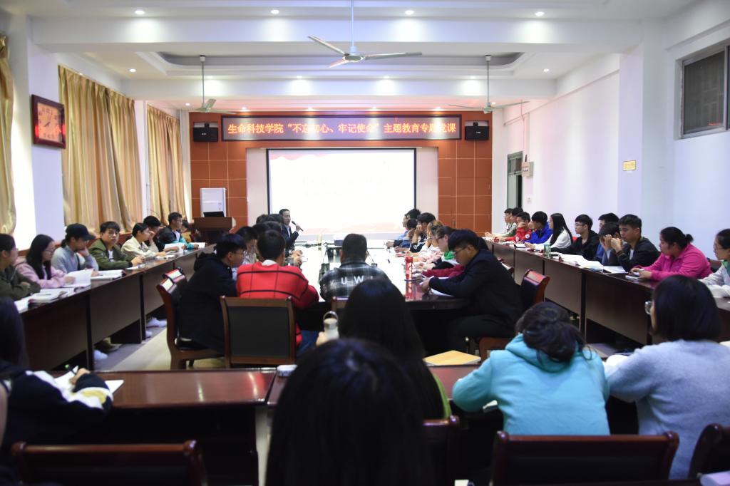 按照《生命科技学院“不忘初心、牢记使命”主题教育实施方案》要求,10月19日上午,学院党委书记余鹏在E110会议室为学院师生入党积极分子讲授“不忘初心、牢记使命”主题教育专题党课。学院第四十九期入党积极分子110余人参加了报告会。