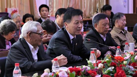 校党委书记周志远发表了重要讲话。他再次对各位校友重返母校参加学校建校80周年纪念大会表示热烈的欢迎,对离退休老同志在学校各个时期建设发展辛勤付出表示崇高的敬意和衷心的感谢。他说,生命科技学院作为学校最早成立的二级学院之一,在学校发展的不同时期勇于担负起历史责任,涌现了黄光正、杨永光、王清连、茹振钢等一大批全国知名专家教授,培养了以买兴普、王建民、杨法谊、胡瑞法等为代表的科技、管理和教育等各类优秀校友11000余人,培育了以百农3217、百农矮抗58、百农207、百棉985、百农4199、百玉5875等为标志性成果的系列小麦、棉花、玉米新品种,为国家和地方经济社会发展,特别是“三农”事业和学校振兴、扬名所做出的突出贡献。他希望学院以学校80周年建校为起点和契机,认真总结学院发展建设经验,全面贯彻党的教育方针,坚持立德树人,进一步弘扬老一代“百农人”的爱校、敬业、质朴、创新的优秀品质和传统,牢记“为党育人、为国育才”和“科研报国”的使命与担当,抢抓机遇,乘势而上,努力建设国内一流、国际有一定影响力、作物学科特色更加鲜明的教学研究型学院,为学校区域特色骨干大学建设做出新的更大贡献。