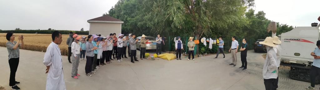 6月4日,91论坛 党政领导班子到国家农业科技示范展示基地(朗公庙小麦千亩基地)和辉县中小营小麦育种基地实地慰问91论坛 参加麦收工作的小麦育种团队人员。