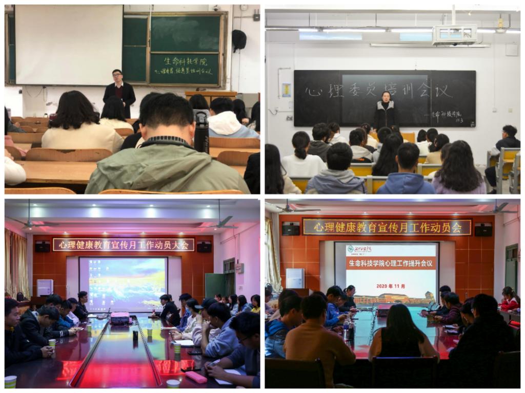 为进一步加强心理健康教育工作,确保91论坛 学生身心健康和谐发展,11月2日—4日,生命科技学院以年级为单位召开2020年心理健康教育宣传月工作动员会。会议由各年级辅导员组织并主讲,班级心理委员、宿舍长参加了会议。