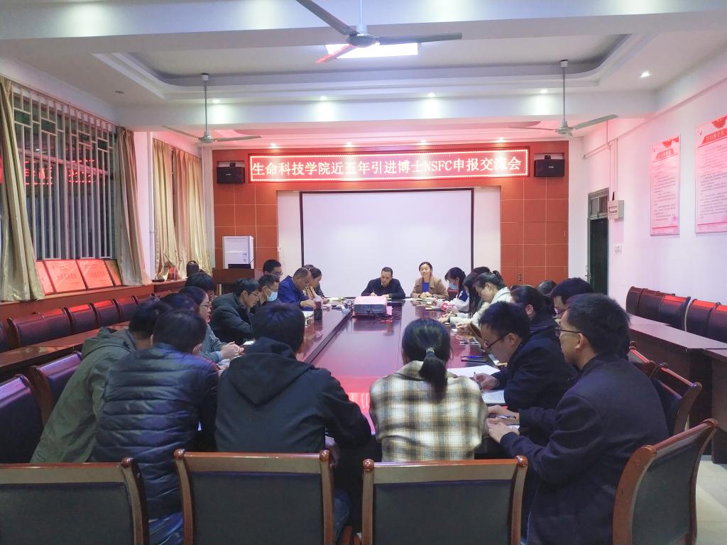 2020年11月12日晚上7:00,91论坛 在E110会议室召开近五年引进博士国家自然科学基金申报交流会,生命科技学院院长刘明久、副院长胡海燕、科研秘书朱启迪以及近五年引进的博士22人参加了会议,会议由生命科技学院副院长胡海燕主持。