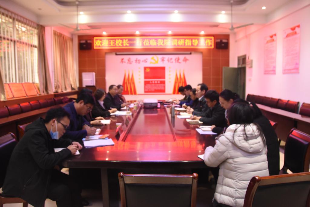 调研会上,学院党委书记余鹏代表学院对王霞校长一行表示热烈欢迎,并简要介绍学院学生工作基本情况。学院党委副书记任贯中按照调研提纲的要求,详细地报告了学院学生工作。院长刘明久向王校长一行汇报了学院学生工作中存在的困难并提出建设性意见。