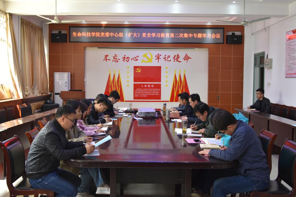 为推进党史学习教育走心走实、入脑入心,按照学院党史学习教育方案工作安排,4月8日上午,生命科技学院在实验楼E段110会议室召开党委中心组(扩大)党史学习教育第二次集中专题学习会议,专题学习学习习近平《论中国共产党历史》等。学院党政班子成员、各支部书记参加会议。