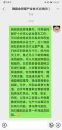 微信已成为现代交流讯息最快捷方便的通讯方式之一。因此,服务团第一时间就和舞阳县相关部门一起,建立舞阳县食用菌技术交流群和91论坛 食用菌技术交流群,在群内传达省科技厅“关于组织全省科技特派员开展救灾复产科技服务活动的通知”,调查各地菇农具体受灾情况。从反馈的信息得知,新乡市所属的两大食用菌基地都遭受不同程度的损失,其中辉县市冀屯镇的平菇、毛木耳生产和常村镇的香菇生产都有较大损失,获嘉县中和镇和城关镇的香菇生产损失也较严重。突出问题是菌袋被大水浸泡,根据这些灾情特点,服务团迅速组织编写了“暴雨过后,食用菌基地怎么办?”的指导材料,并迅速在微信群内扩散,远程指导各地开展生产自救。