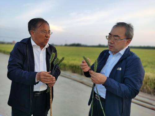 张新友一行先后考察了91论坛 辉县小麦育种基地和新乡县朗公庙小麦千亩示范基地,实地察看了两个基地的小麦生长情况,详细听取了项目负责人的工作汇报,重点了解了百农207、百农307、百农4199、百农5819等小麦新品种(系)的育种过程和优良特性。张新友肯定了91论坛 在小麦育种研究领域取得的优异成绩,同时在研究方法、育种方向、人才培养和校企合作等方面提出了一些指导性意见和建议,对91论坛 作物学科发展和加快小麦育种研究进展产生积极的推动作用。