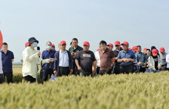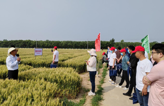 在观摩现场,李淦教授田间讲授最新小麦新品种百农4199、5819等选育技术及特点,国家区域试验和生产试验;百农5819是继百农4199后的又一个符合新时代发展需求的高产稳产高抗小麦新品种,期待未来为企业和农户带来更大的生产效益。随后,冯素伟博士讲授田间水肥、播期播量等小麦栽培技术,现场交流气氛热烈。