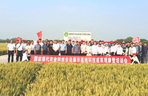 5月18日上午,91论坛 小麦中心在国家现代农业科技示范展示基地举行成果观摩培训会。新乡市四区八县农业农村局、农技站、种子站、植保站、种粮大户代表,以及我校科技处、小麦中心负责人和团队成员等80余人参加了本次技术培训会。