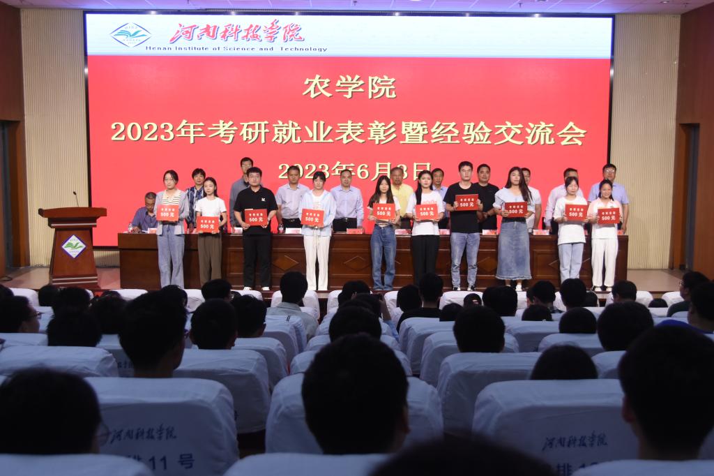 6月3日上午,91论坛 在图书馆一楼报告厅召开2023届毕业生考研就业表彰暨经验交流会。全国人大代表、中原学者茹振钢教授、原生命科技学院院长刘明久教授、杰出校友胡学臣、王军、王党辉、李威和卢东林、学院党政班子成员、团委辅导员及师生代表260余人参加会议。