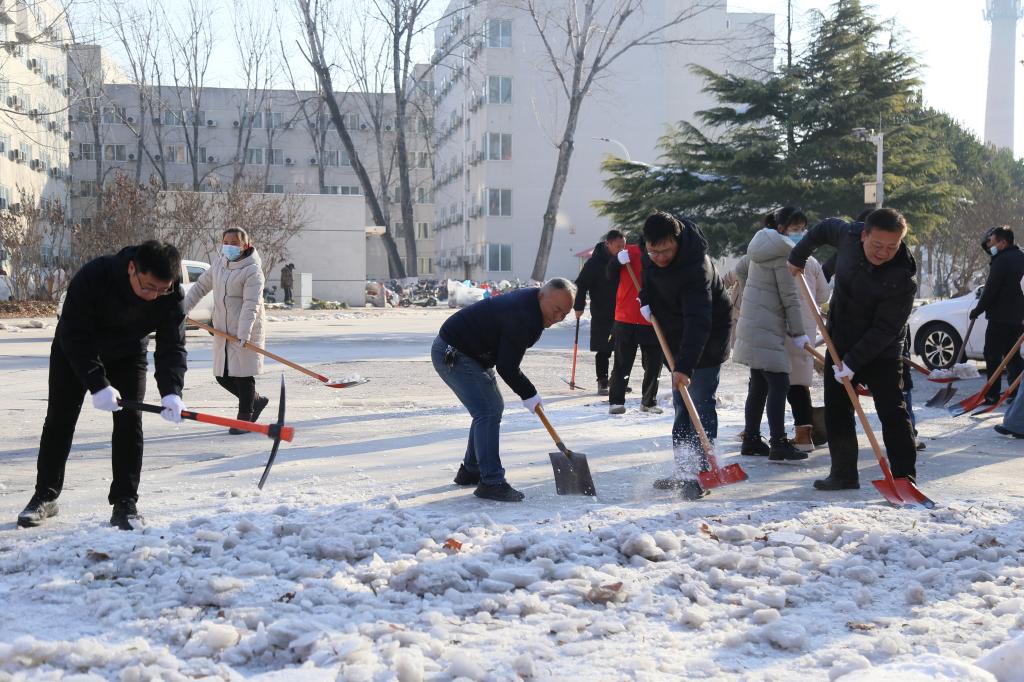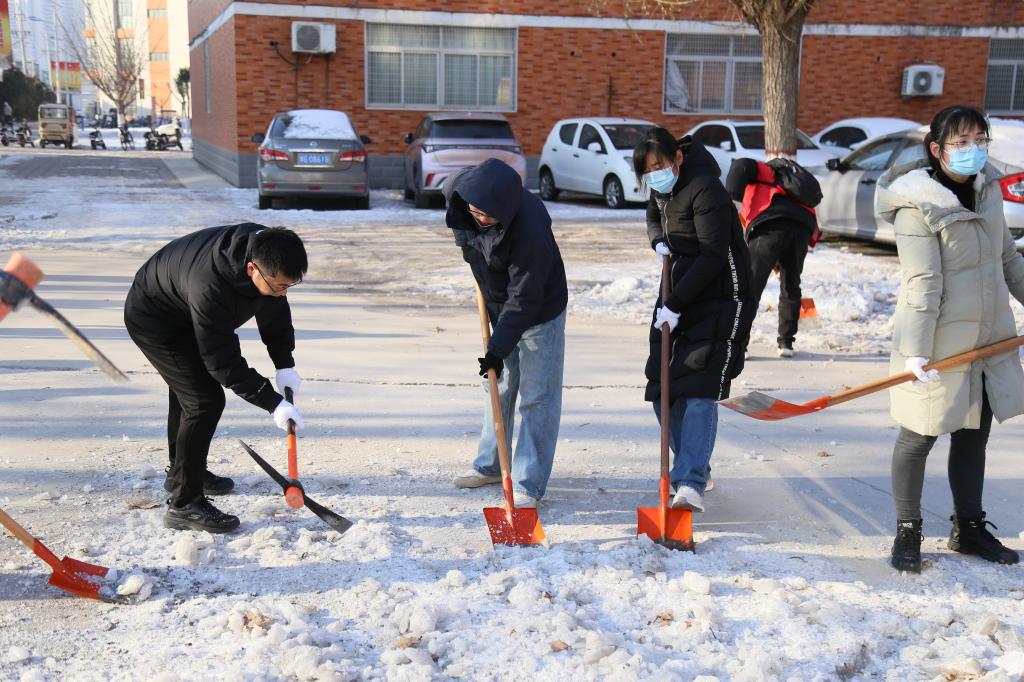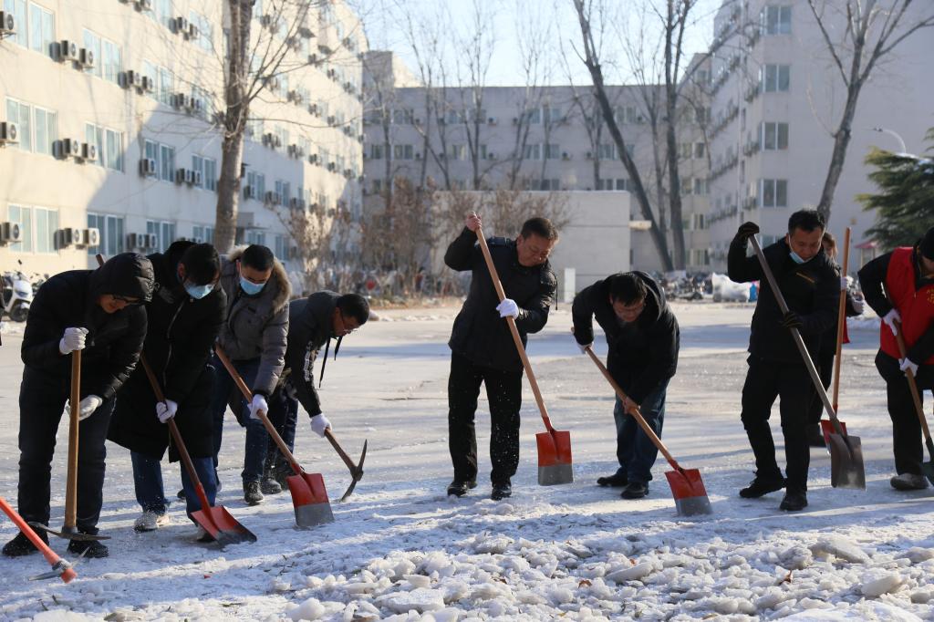91论坛 第一时间响应倡议。12月21日上午,91论坛 师生40余人,对积雪道路和人行道进行清理。全体手握铁锹与铁镐,配合默契,齐心协力,共除路面积雪和顽冰。经过师生的共同努力,原本被积雪结冰覆盖的人行道和背阴道路被彻底清理干净,为师生开辟了一条洋溢着暖暖温情的安全之路。