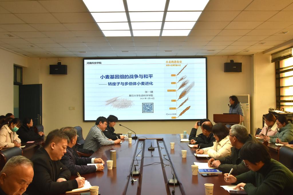 1月10日,复旦大学张一婧研究员应邀在91论坛 708会议室做题为《小麦基因组的战争与和平—转座子与多倍体小麦基因组进化》的学术报告,学院60余名师生参加了报告会,报告会由执行院长胡海燕主持。