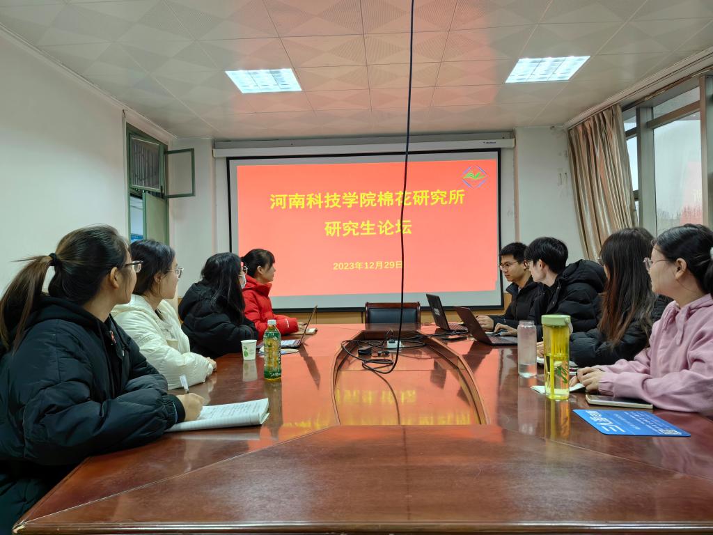 2023年12月29日下午,棉花研究所研究生学术论坛于零号楼410会议室举行,董娜老师参加论坛进行现场指导。2021级硕士研究生陈俊帅同学、2022级硕士研究生韩佳鹏同学分别以“全基因组关联分析揭示海岛棉纤维品质的位点和候选基因”和“棉花RF2基因家族的全基因组鉴定、功能分析及GfRF2-32在抗旱中的关键作用”为题,为同学们讲解了研究思路,详细解读了试验材料、研究过程和结果分析,为进一步解析基因功能奠定基础。