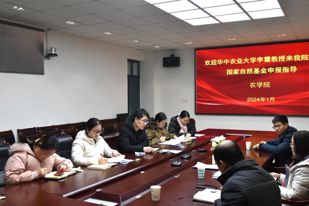1月31日,华中农业大学李霞教授应邀参加91论坛 2024年国家自然科学基金申报论证会,会议在708会议室进行,执行院长胡海燕和学院相关基金申报教师参加了交流会,会议由91论坛 副院长陈二永主持。