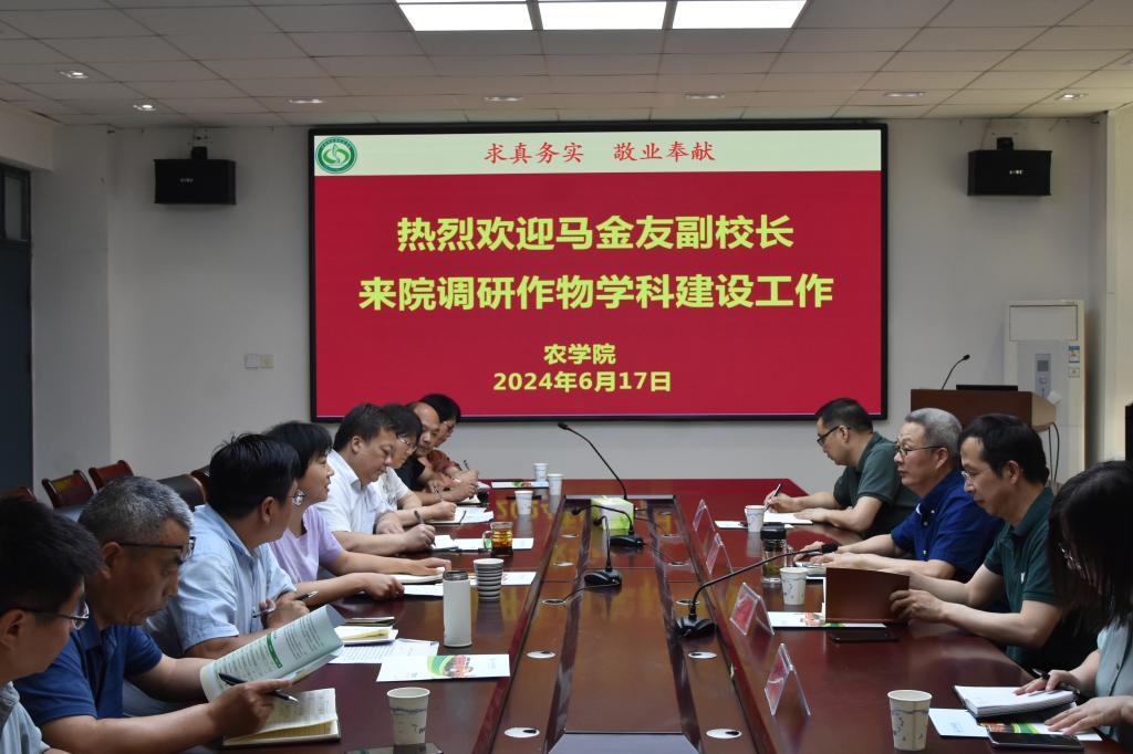6月17日下午,我校副校长马金友到91论坛 调研作物学学科建设工作,研究生处负责人陪同调研,91论坛 党政领导班子成员参加会议。