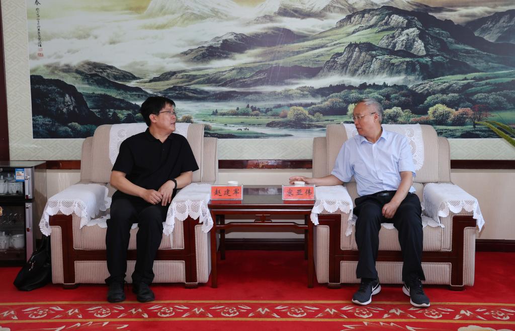 宋亚伟对赵建军来校交流表示热烈欢迎,并简要介绍了近年来我校在人才培养、科学研究、社会服务、文化传承等方面取得的成绩,希望以此次交流为契机,加强沟通与交流,在科学研究、人才培养、社会交流等方面开展深入合作。赵建军对我校的热情接待表示感谢,对我校在农业领域取得的成绩给予了高度评价,并介绍了河北农业大学人才培养、教育科研、发展模式等情况。