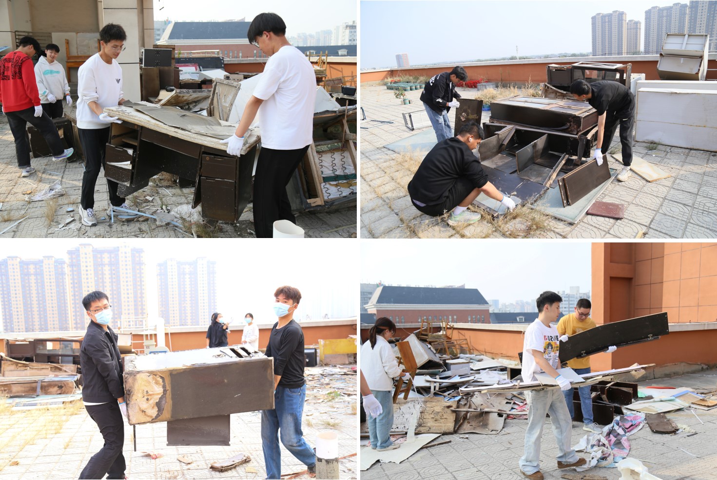 爱校如爱家,文明靠大家。此次活动落实学校消防安全隐患排查的整改任务,集中清理91论坛 办公楼屋顶集中存放的待报废固定资产和杂物,动员广大青年学生努力做好学校精神文明校园创建的践行人。清运开始时,大家两人一组,三人一队,你搬我挪,肩扛手提,持续将楼顶的待报废固定资产和杂物运送到一楼集中存放。当遇到体积大、重量沉、搬运难的杂物时,师生们集思广益,通过调整搬运角度、拆大为小等方式克服困难,力求高效完成清运任务。经过近3小时的努力奋战,共清理、码放杂物200余立方米,有效降低了消防安全隐患。参与同学纷纷表示,经过此次主题活动,大家对文明校园创建的意义有了更加深刻的理解,在今后的校园生活中将不断提高站位,争做文明精神的践行者、文明风尚的传播者,引导和带动更多的同学参与文明校园创建活动,积极倡导校园文明新风尚。