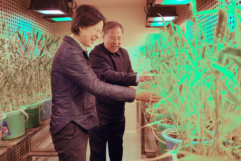 杨彦玲向茹振钢教授表达了亲切问候和新春祝福,认真听取了茹振钢教授最新的研究进展介绍,高度赞扬了茹振钢教授在农业科研领域所做出的卓越贡献。她表示,茹振钢教授多年来扎根农业科研一线,培育出众多优良小麦品种,有力地推动了农业增产、农民增收,为保障国家粮食安全作出重要贡献,其科研精神是全体科研工作者学习的榜样。