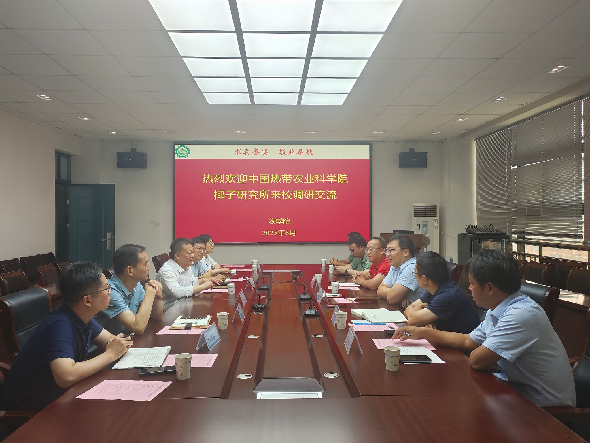 胡铁柱对中国热带农业科学院椰子研究所一行的到来表示欢迎,并简要介绍我校历史沿革、办学特色、科技创新、成果转化及团队建设的情况。
