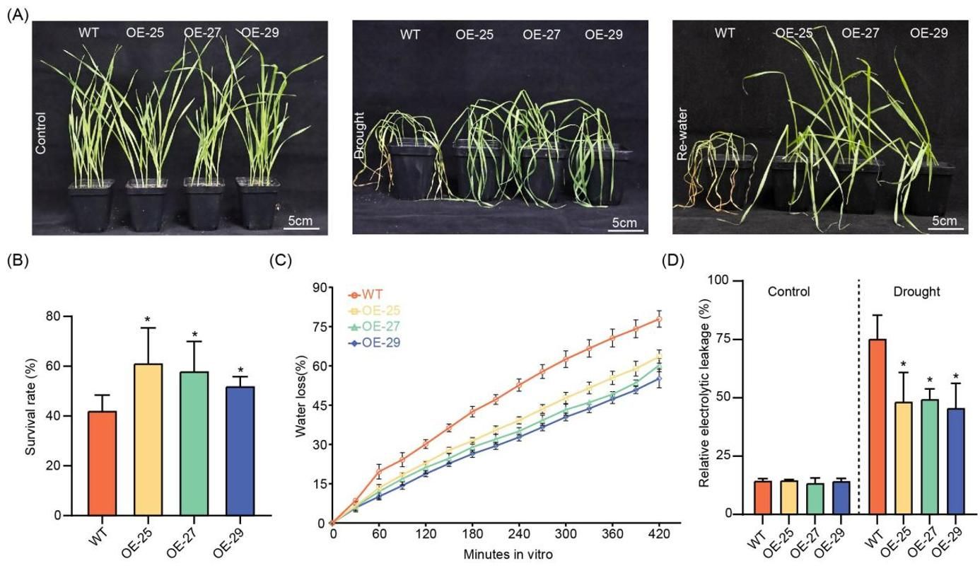图1过表达TaSTP显著增强了小麦的抗旱性