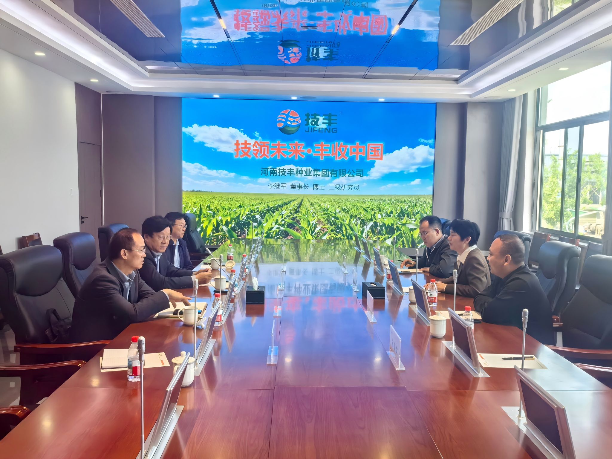 河南技丰种业集团董事长李继军博士、总裁焦宏廷研究员、副总经理李传强、胡利民等高管团队热情接待并全程陪同。胡海燕一行实地参观了集团现代种子工程中心、智能加工车间及标准化仓储中心,详细了解企业科研布局、现代化运营管理及人才发展平台建设情况。