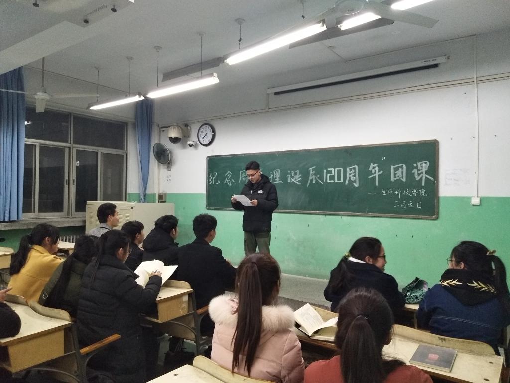 2018年3月5日,是敬爱的周恩来总理诞辰120周年纪念日。为缅怀周恩来总理的丰功伟绩,稳步推进实现中华民族伟大复兴的中国梦,生命科技学院于2018年3月5日19:30在2204教室开展了 “纪念周总理诞辰120周年”主题团日活动。学生会干部代表参加此次活动,
