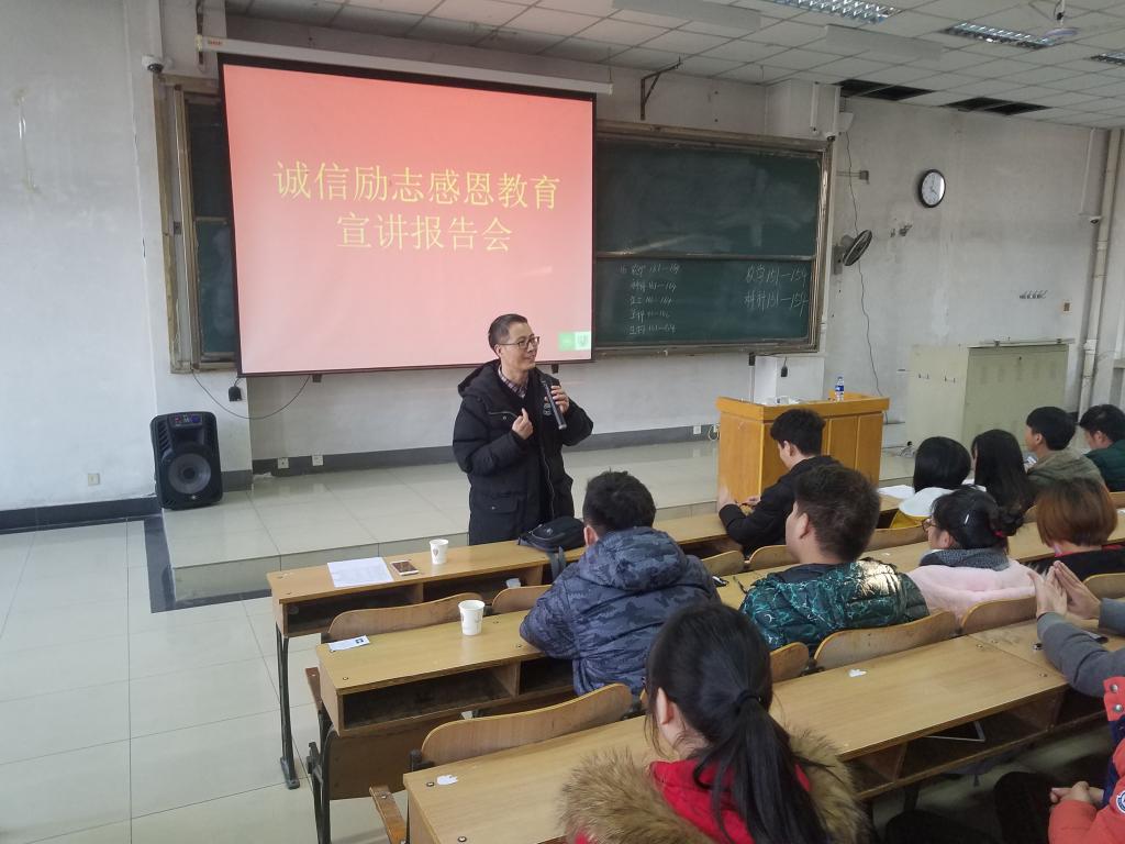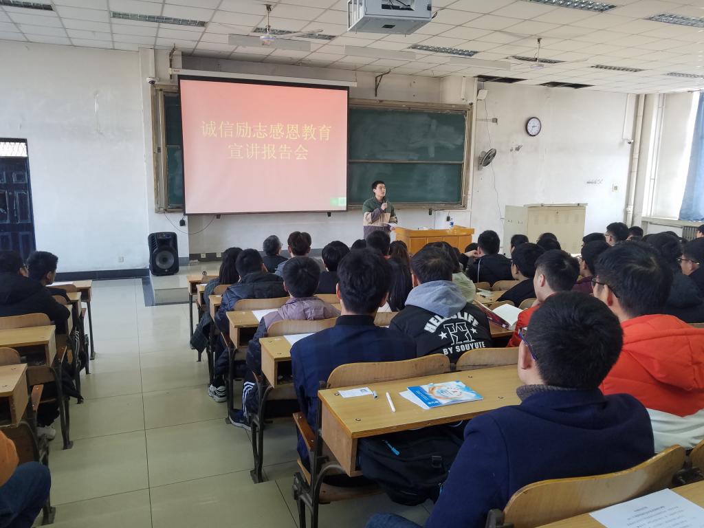 为了让受资助的学生正确合理使用国家奖助学金和助学贷款,争做自立自强、励志成才的表率。2017年12月16日下午,生命科技学院在零号楼合三教室举办了以“诚信励志感恩教育”为主题的宣讲报告会。学生处副处长杨宾峰受邀出席,参加会议的有91论坛 全体获得2017年度国家奖、助学金的同学,报告会由张亮老师主持。