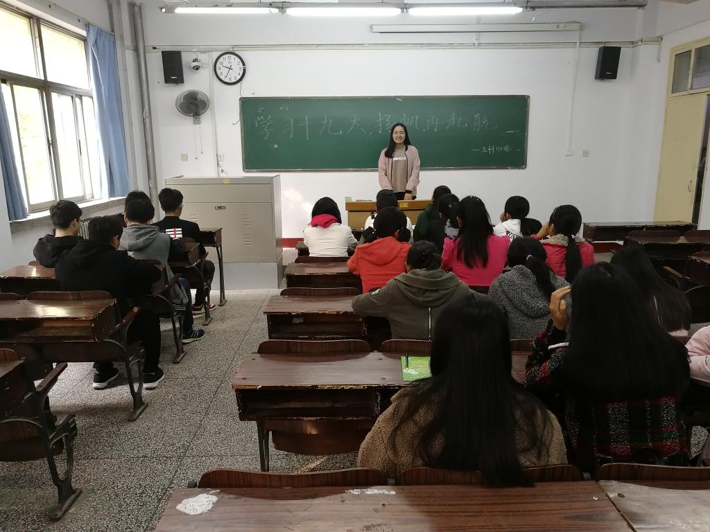 各团支部开展的“学习十九大”的主题团日活动内容丰富多彩、形式多种多样。在此次“学习十九大”主题团日活动中,组织者首先向同学们介绍学习十九大的深刻内涵和时代意义。接着,同学们根据各自对十九大报告精神的学习和理解,进入讲解环节,同学们气宇轩昂,豪情壮志,展现了新一代青年的爱国热情。在最后的自由讨论中,同学们纷纷表示通过学习党的十九大,了解到国家大事与大学生息息相关,作为学生更应该深入了解学习其内容,感悟其精神,认真学习好、贯彻好。