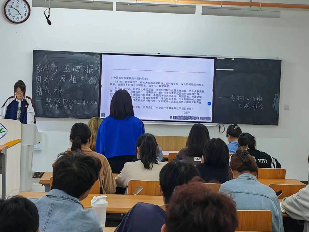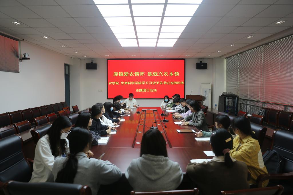 5月4日上午,91论坛 、生命科学学院在12号教学楼708会议室以“厚植爱农情怀 练就兴农本领”为主题,开展五四青年节主题团日活动,学习习近平总书记给中国农业大学科技小院的学生回信。学院团委全体教师和三十多名团员代表参加活动。