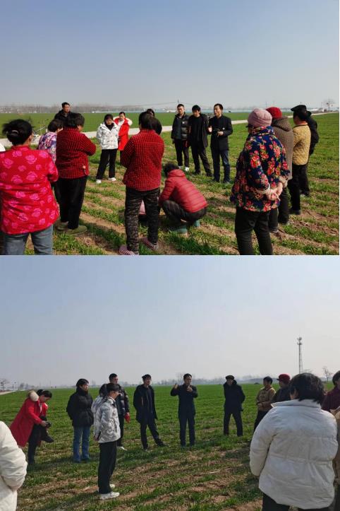 目前我省大部分地区小麦正处于返青-起身期,也是越冬期间受雨雪偏少及低温冻害影响的麦田促弱稳壮、预防倒春寒以及病虫草害综合防治的关键管理时期。2023年2月16日-18日,河南省小麦产业科技特派员服务团成员丁位华、金立桥、李景辉等一行6人,赴沈丘县北城区顺祥种植专业合作社、纸店镇金源农业合作社、周营镇久酒中梁农业开发有限公司等合作社,组织周边种粮大户和群众,开展了别开生面的田间管理技术培训活动,服务团根据当前的气候特点和小麦的生产情况进行了有针对性的建议和指导。同时应沈丘县推进科技特派员服务工作的要求,服务团向沈丘县工信局总结了2022年的工作及取得的成果,并把2023年的工作部署和目标做了详细的汇报和交流。