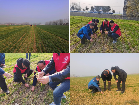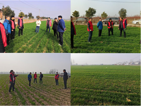 2021年12月8日-9日,河南省小麦产业科技特派员服务团胡铁柱、丁位华、李淦、吴晓军、赵来斌等一行6人赴沈丘县北杨集镇林家富种植农业合作社、洪山镇绿之源新型农业开发公司、富鑫家庭农场、纸店镇金源农业合作社、周营乡久酒中梁农业开发有限公司、莲池镇远大种植农业合作社等示范基地以及洪山镇魏庄行政村调查苗情并指导小麦当前管理工作。沈丘县工信局张振副局长、王贺丽主任以及当地科技特派员等一同参与了调查和指导工作。