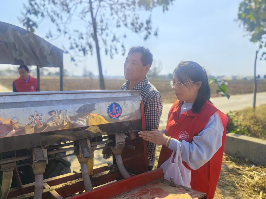 她向农户介绍到:“北斗导航是一种广泛使用的卫星导航系统,它可以用于播种机、施肥机、旋耕机等农机的导航定位。如播种机加装了北斗农机自动导航驾驶系统,操作人员可按照设定好的路线自动行驶,通过一部手机对播种作业参数进行设置,并实时观测作业状态,与传统播种方式相比,不仅降低小麦播种量,节约了种子资源,同时解决了过去小麦播种不直、行距不匀和播种深浅不一致等问题,助于保障小麦种子同时出苗、保苗率高,实现苗全苗壮,实现高效率、高精度、高质量的播种作业,且利于改善了冬小麦生育后期光合作用,为粮食丰产丰收奠定基础。此外,也可实现无人操作模式,减轻了驾驶员的劳动强度。