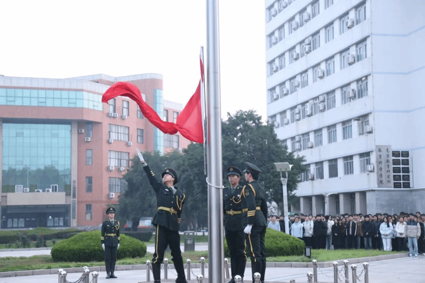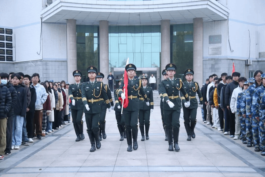 清晨7时整,升国旗仪式准时启幕。国旗护卫队队员身着统一制服,精神抖擞、步伐坚定,护送五星红旗迈向升旗台。激昂雄壮的《义勇军进行曲》奏响,全体师生肃立注目,嘹亮的国歌响彻广场,鲜艳的五星红旗在晨光中缓缓升空、迎风舒展。
