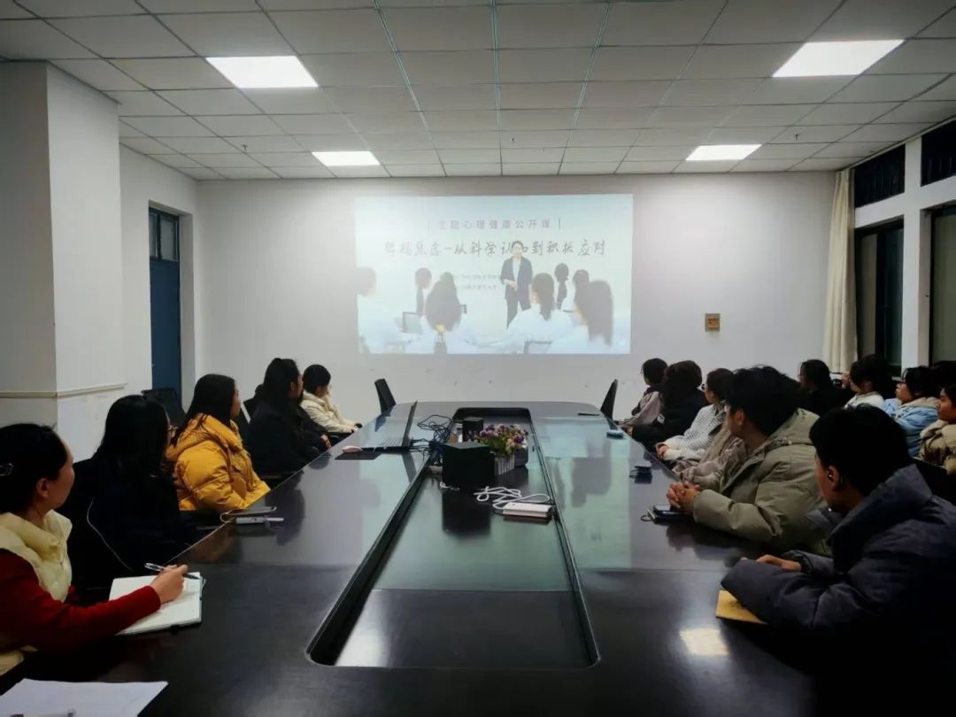 本次公开课以科学视角切入,系统解析焦虑本质,紧密围绕学生高频面临的学业压力、人际交往、就业困惑等现实问题,通过鲜活案例剖析、实用方法分享、互动场景模拟等丰富形式,深入浅出地讲解正念训练、八段锦、ABC认知行为理论、SMART原则等焦虑调节技巧,引导同学们学会与焦虑对话,将无形心理压力转化为主动前行的内在动力。